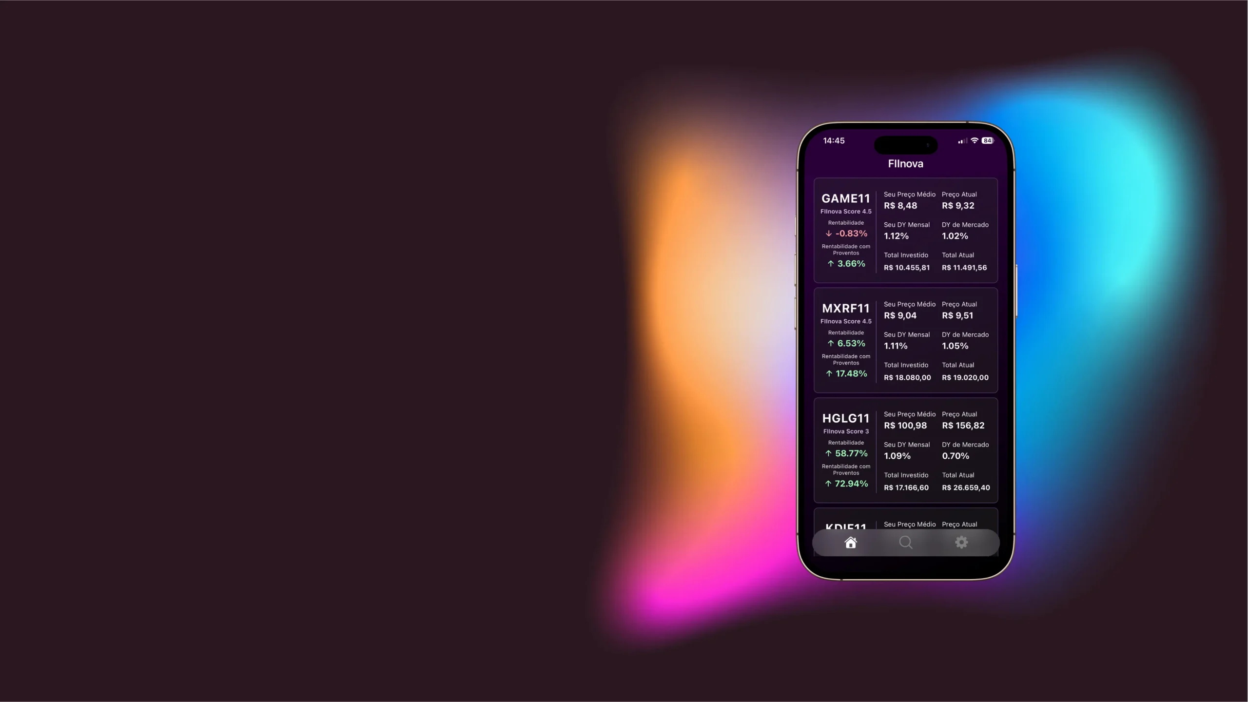 “Desde que instalei o FIInova comecei a ficar muito mais por dentro do que acontece no mercado de fundos imobiliários e parei de perder tempo com cálculos de preço médio e DY em planilhas”